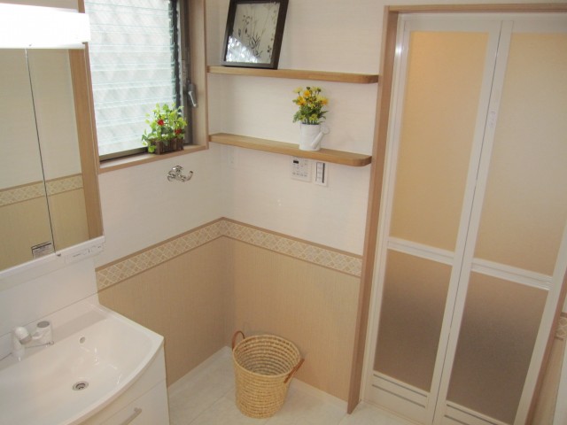 柔らかな印象の洗面室